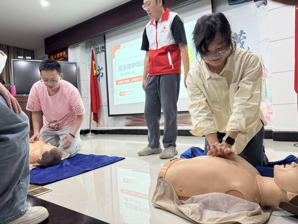 本次培训由大观红十字会专业救护培训师全程指导,课程既包含线上理论知识培训,也包含线下实操,涵盖红十字运动基础知识、心肺复苏(CPR)、自动体外除颤器(AED)操作、海姆立克急救法、创伤止血包扎等模块。培训师结合真实救援案例,重点解析突发情况下的急救规范流程,并组织参训人员分组进行心肺复苏按压、AED设备联用、三角巾绷带包扎等实操演练,确保急救技能转化为实战能力。参训师生通过训练,全面掌握识别心脏骤停、实施高质量胸外按压、气道异物梗阻处置等关键技能。参训师生纷纷表示,课程设计紧贴日常学习生活及工作中的潜在风险,提升了大家应对意外伤害的处置信心。