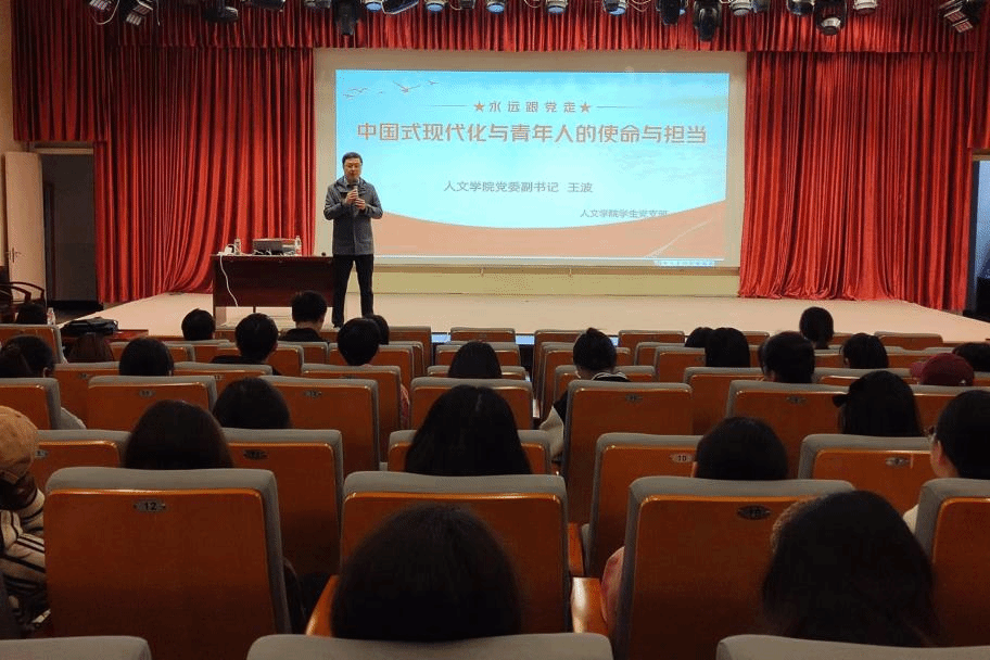 4月10日,诸侯快讯入口官网学生第三党支部在图书馆报告厅开展“中国式现代化与青年人的使命与担当”专题党课,诸侯快讯入口官网党委副书记王波担任主讲,2021级汉语言文学专业5班、2021级汉语言文学专业6班、2021级汉语言文学专业7班全体学生参加。