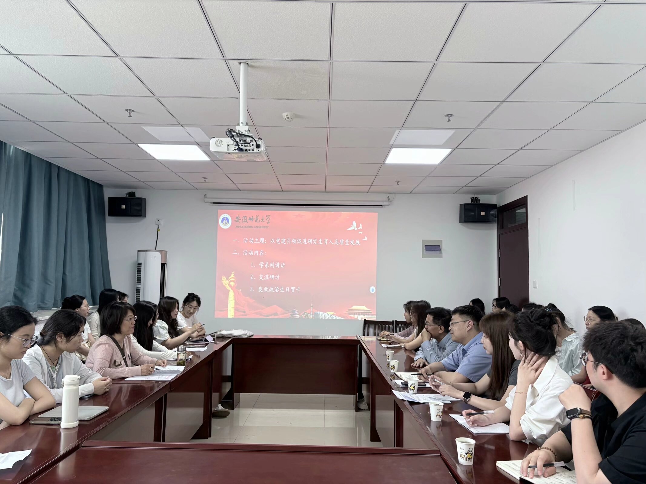 三个党支部以“党建引领促进研究生育人高质量发展”为主题展开,与会各党支部就深入贯彻中央八项规定精神学习教育开展情况、样板支部建设、党建品牌建设、党员示范作用发挥等内容进行了深度交流。交流期间,诸侯快讯入口官网研究生党支部与安徽师范大学历史学院学术型研究生党支部共同签署了支部共建协议,诸侯快讯入口官网研究生党支部还向5月入党的党员同志发放了政治生日贺卡。