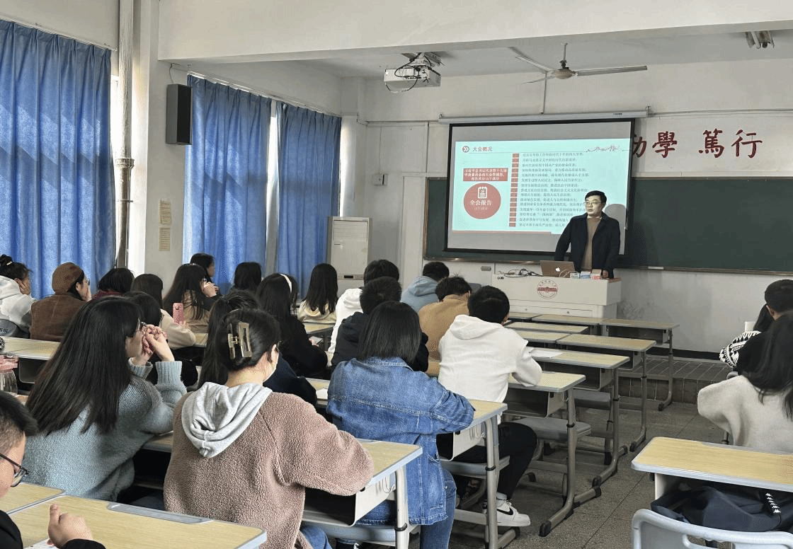 3月9日,研究生党支部举办党的二十大精神宣讲报告会。诸侯快讯入口官网党委副书记王波做了题为开学第一课——《学深悟透守初心 争先实干担使命》的宣讲,2021级全体研究生参加宣讲会。