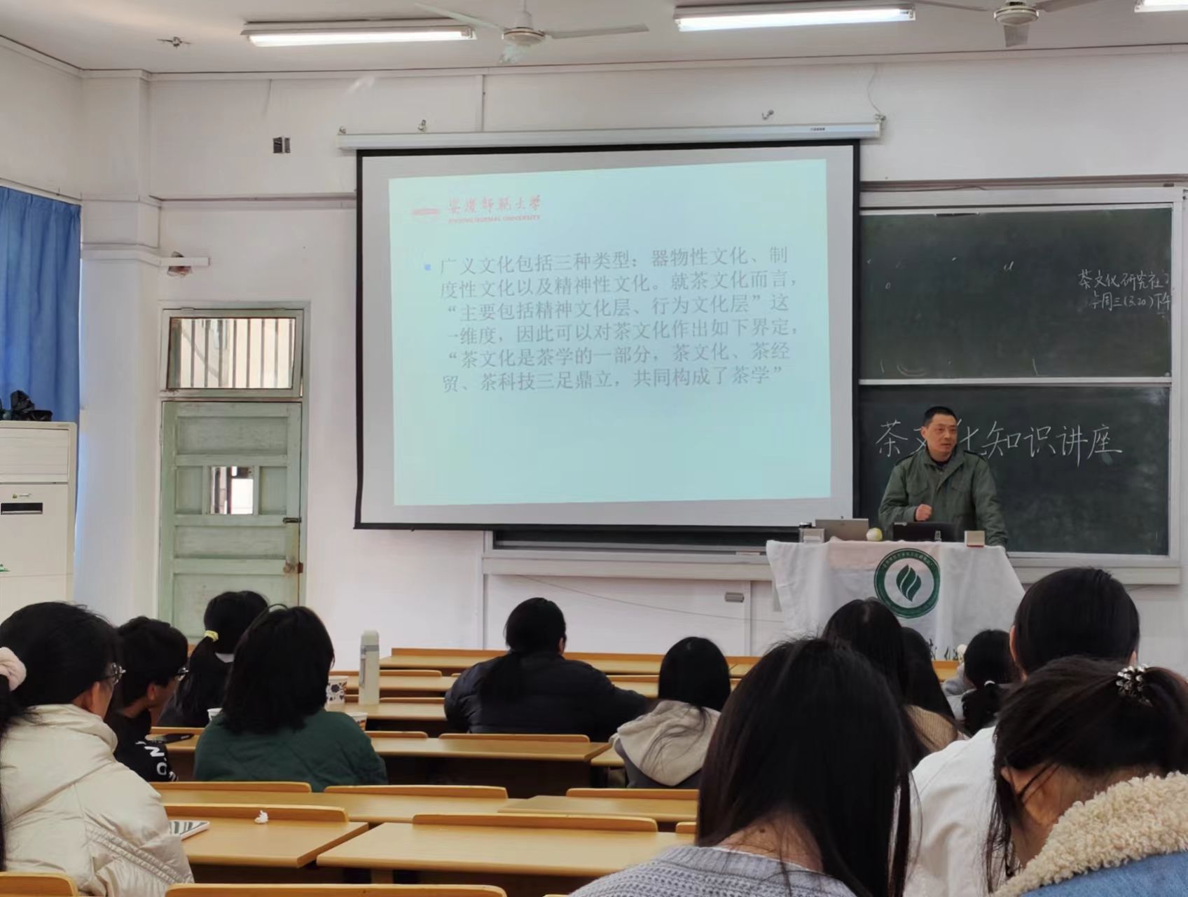 茶文化,作为中华优秀传统文化的重要组成部分,承载着深厚的文化底蕴和哲学思想。近日,大学生茶文化研究社在安庆师范大学菱湖校区教学楼315教室举办了一场主题为“茶杯中的乡愁:中国茶文化中的儒释道文化”的茶文化知识交流活动。本次活动由蔡洞峰老师主讲,旨在让同学们了解中国茶文化中蕴含的儒释道思想,感悟茶道中的韵味。