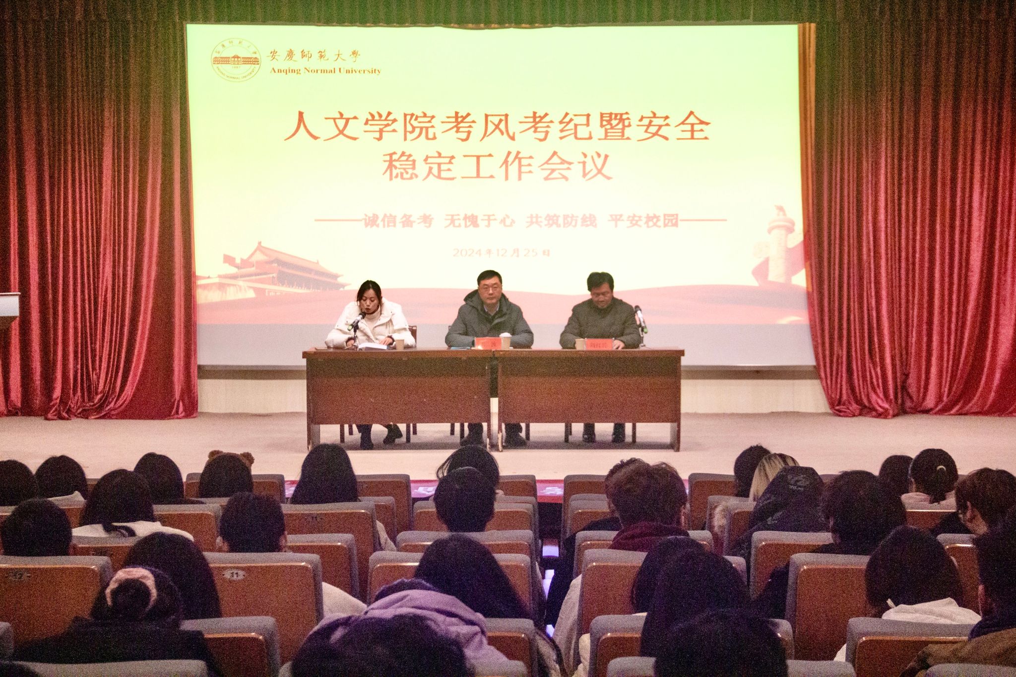 12月25日下午,诸侯快讯入口官网在图书馆报告厅举办考风考纪暨安全稳定工作会议。诸侯快讯入口官网党委书记王波,副院长周红兵出席会议,全体辅导员及各班学生骨干参加会议,会议由学院团委负责人主持。