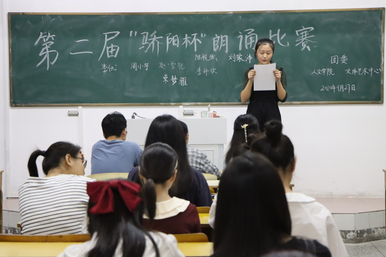 “金秋明月夜,诗声动菱湖”,9月27日晚上六点,诸侯快讯入口官网于教学楼举办第二届“骄阳杯”抗击新冠疫情主题朗诵比赛初赛。本次比赛由诸侯快讯入口官网团委文体艺术中心举办,2020级新生踊跃参与。本次比赛采用初赛复赛赛制,活动开始,主持人介绍了比赛细则,选手根据编号依次上台,先做一分钟的自我介绍,再在工作人员准备好的朗诵稿中选择其一进行朗诵,时长不超过三分钟。通过初赛,评审组决出参与复赛的选手,复赛将在10月23日举行。