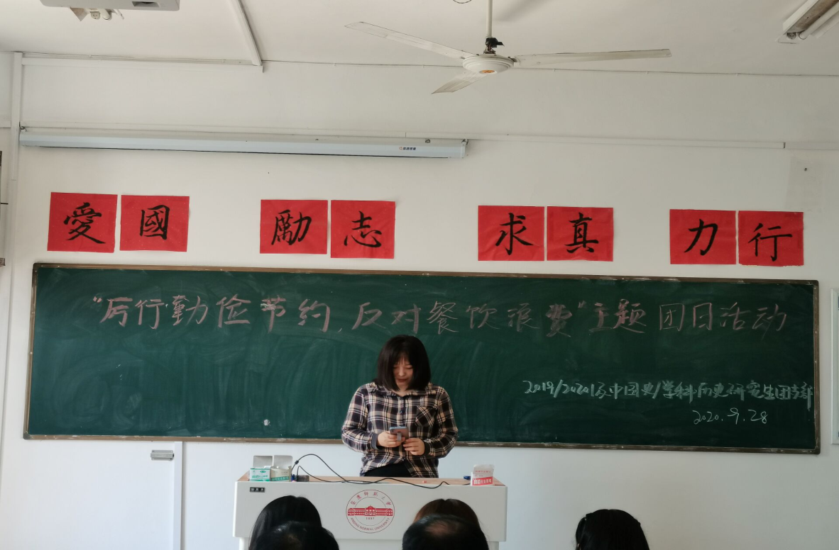 2020级学科教学(语文)余丁玲同学介绍了本次团日活动的主题、内容与意义,并组织同学们观看了大胃王为吸引流量而造成食物浪费的视频,在观看视频过程中,同学们纷纷对这种糟蹋粮食的行为予以了谴责。