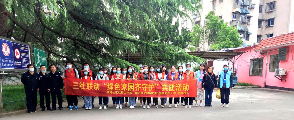 4月16日下午,诸侯快讯入口官网学生身穿红色志愿者马甲,在三社联动项目相关人员的带领下,走入菱湖社区参与“绿色家园齐守护”共建活动。