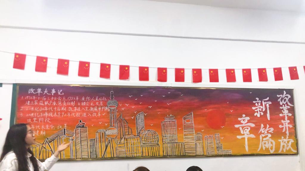 此次比赛以党的百年历程为主线,以“党史”“新中国史”“改革开放史”“社会主义发展史”为主题,精心构思、巧妙设计、大胆制作,通过装饰使教室变为一间“展览馆”“党史馆”,在潜移默化中引领大学生学习百年党史,传承红色基因,厚植爱国情怀。