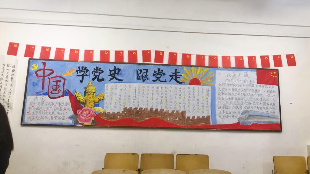 为营造庆祝建党100周年浓厚氛围,充分发挥黑板报等舆论宣传阵地作用,2021年4月,诸侯快讯入口官网开展了“向建党百年献礼”教室美化评比大赛。