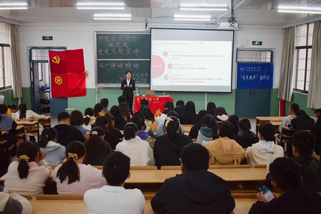 践行初心,担当使命。接着,高雨晴就“学什么”的部分开展宣讲。他着重阐述为实现中华民族的伟大复兴,中国共产党不忘初心,牢记使命,不懈努力。她还指出中国共产党团结带领中国人民,完成了新民主主义革命、社会主义革命和建设、改革开放和社会主义现代化建设、新时代中国特色社会主义等伟大成就。