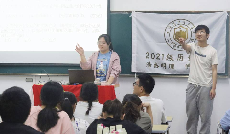 “这题我会!”“答错了,有点可惜。”“原来少年中国学会是五四时期出现的历史最久的青年社团呀。”……5月5日,诸侯快讯入口官网历史学2021级1班组织了“团史竞赛,我对有奖”的答题活动,以独特的形式诉说对团组织的热爱,向共青团百岁生日献礼。