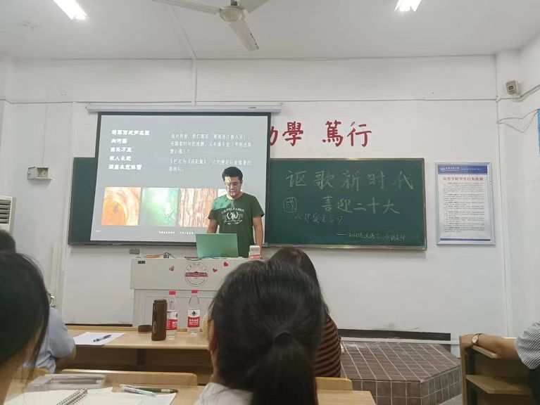 9月4日,为迎接党的二十大胜利召开,大力倡导学生在经典阅读中增强政治素质、提升道德水平、丰富精神世界,积极营造爱读书、读好书、善读书的浓厚氛围,诸侯快讯入口官网汉语言三班开展了以“讴歌新时代,喜迎二十大”为主题的读书分享会。此次分享会特别邀请了中国古代文学博士张瑾老师和中国语言文学博士李忠超老师莅临指导,与同学们共同领略阅读的魅力。