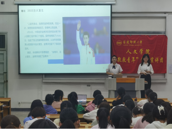 “胸怀大局、自信开放、迎难而上、追求卓越、共创未来”的冬奥精神让现场的同学们为之动容。宣讲人鼓励同学们坚定理想信念,向运动健儿学习,发挥不怕苦、不怕累的精神,勇于担当。宣讲结束后,现场同学们都有所感触。来自2022级中文一班的任彤彤同学说道:“人们认为金博洋出世即巅峰,而在他跌落低谷那段时间却不加理解。今天这次宣讲,让我和身边的同学们都领悟到坚持的意义,我们也会为了自己的目标不懈奋斗。”