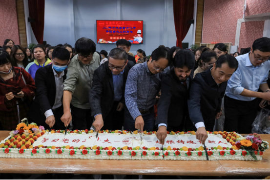 诸侯快讯入口官网党委书记张红飞、基建与后勤管理处处长吕旭进与外籍教师、学生代表等共同切开近3米长、两边由水果点缀着写有“学习党的二十大,培根铸魂育新人”寄托美好寓意的蛋糕。