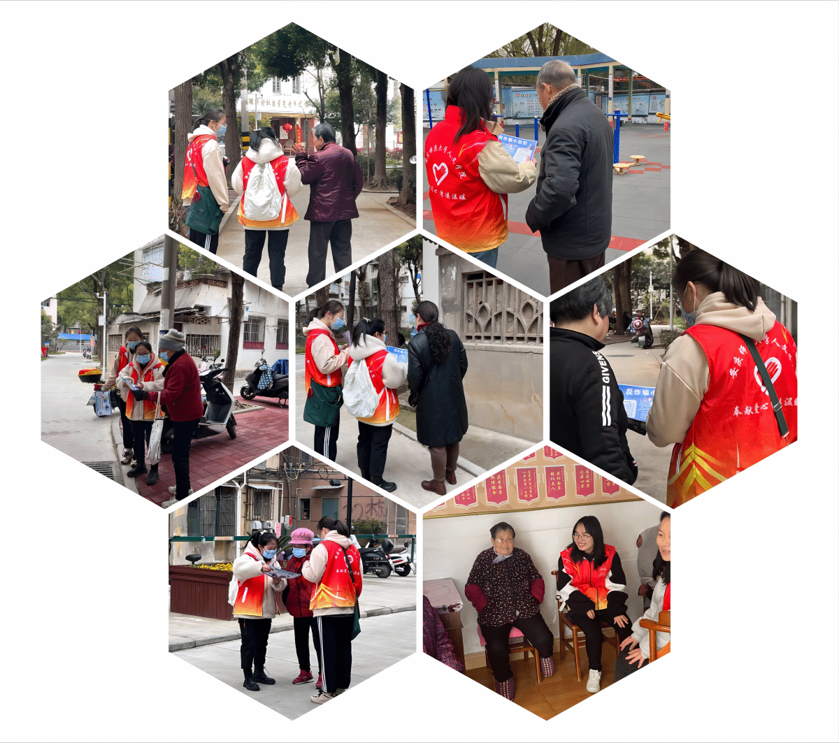 志愿者走进菱湖新村社区,举办了反诈骗宣传、社区清扫及慰问老人等一系列活动。一部分志愿者以生活中常见真实事件为例向社区居民介绍防诈骗知识,提高居民的反诈意识。另一部分志愿者则在社区捡拾白色垃圾、擦拭宣传栏,维护社区卫生,并为有困难的老人送上帮助。志愿者们和老人们融洽的交谈,不仅让社区的老人们学习到反诈骗知识,同时也给他们带去了关怀和温暖。社区清扫在为社区发展贡献微薄力量的同时,也提高了同学们的文明意识和合作意识,志愿者们在社会实践中,将雷锋精神“内化于心,外化于形”。