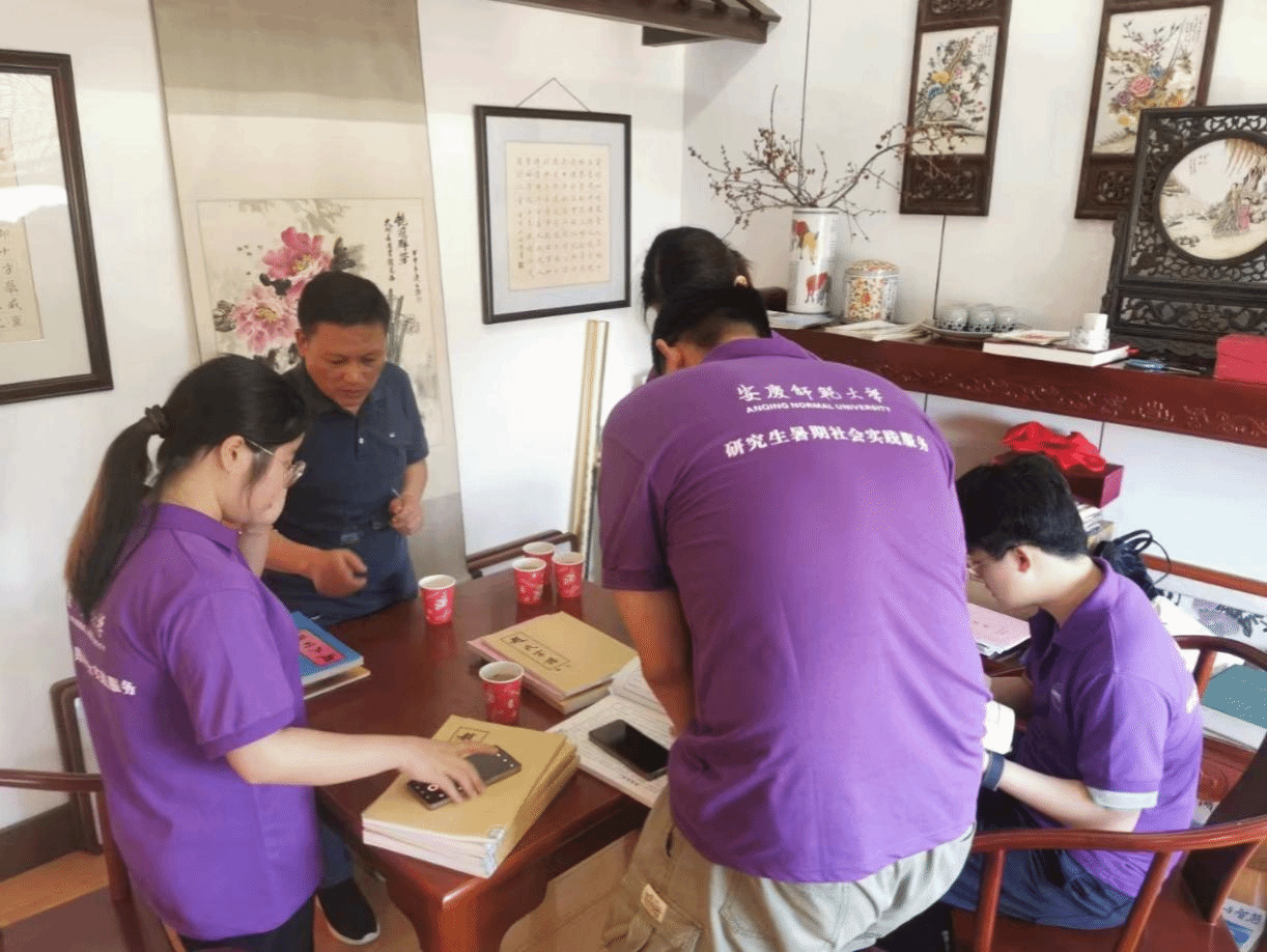 太湖县图书馆历史悠久,连续多届被评为“国家一级图书馆”,其中收藏了赵氏家族的族谱。为追本溯源,实践团将太湖县图书馆列为此次考察的第一站。在太湖县图书馆,队员们受到了太湖县文联副主席曹杰友和太湖县图书馆地方文献室王晓霞主任的热情接待,曹主席和王主任向同学们展示并讲解了赵氏家族的族谱及相关家族文献,队员们认真查阅相关著作并且作了整理记录。