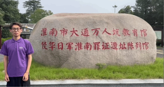 淮南站:8月16日,实践团小分队谢天生前往淮南大通万人坑教育馆。淮南市南山脚下留下了日军掠夺煤炭资源、残害苦难矿工的惨痛记忆。记录淮南煤矿屈辱历史的大通万人坑教育馆就坐落于此。在教育馆门前,远远就能看见“牢记历史、珍爱和平”八个大字正对着大门。简短的几个字,时刻告诫来这里参观的人们,永远莫忘历史,珍惜当下的幸福生活。