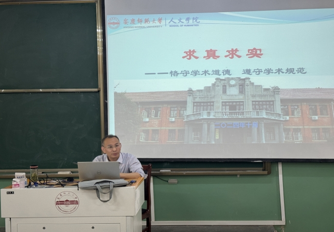 报告会环节,金仁义教授为同学们带来了题为《求真求实——恪守学术道德遵守学术规范》的精彩报告。报告全面梳理了从国家教育部到学校等不同层级学术道德规范性政策文件制定、完善的演变过程,强调遵守学术道德、预防学术不断的重要性和现实意义。随后金教授结合学术界相关学术不端实际案例,带领大家重点学习并解读了《学位法》《学位论文作假行为处理办法》《安庆师范大学学术道德规范及学术不端行为处理办法》等政策文件。他还结合实例,指出在论文写作中要警惕AI技术的不当使用,提醒同学们要时刻紧绷学术道德和学术规范之弦,诚信做人,严谨治学。