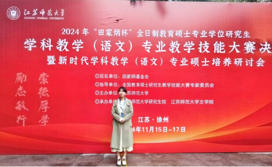 2024年11月15-17日,由“田家炳杯”全日制教育硕士专业学位研究生教学技能大赛专家委员会指导,“田家炳教育基金会”冠名,江苏师范大学主办的2024年“田家炳杯”全国高等院校全日制教育硕士学科教学(语文)专业教学技能大赛决赛在徐州举行。诸侯快讯入口官网学科教学(语文)专业硕士生导师蔡伟保老师带队,2023级学科教学(中文)张贤琨同学参加本次决赛并获得三等奖。