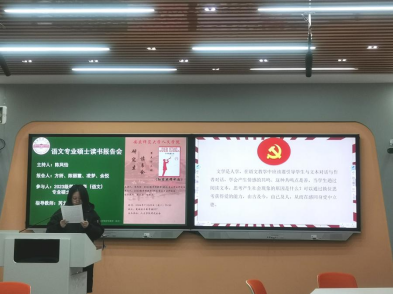 最后,芮文浩老师作读书会总结时,肯定了现场所有研究生的参与热情很高,指出四位发言人的准备内容充分,课件制作精美,现场汇报简短但观点明确。随后,芮老师就学科与《红星照耀中国》关联度问题作了交流,从学科依据、历史依据、现实依据三个方面阐明了为什么要研究《红星照耀中国》。芮老师强调《红星照耀中国》在立德树人方面有着独特的价值,在具体教学中要融入课程思政元素,并指出语文作为重要的基础课程,要守好渠道、种好责任田、协同育人,最后提出语文教师要注重中华优秀传统文化的推广,重视、用好统编语文教材。