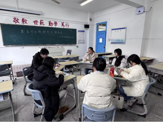 12月18日下午,24级中国语言文学现当代文学方向研究生在菱湖校区教学楼304教室举办第五十七期研究生读书会。本次读书会由24级中国现当代文学方向硕士研究生李珂馨主持,诸侯快讯入口官网庞云芳老师受邀参加并进行现场指导,24级中国现当代文学方向硕士研究生全体学生参加此次读书会。
