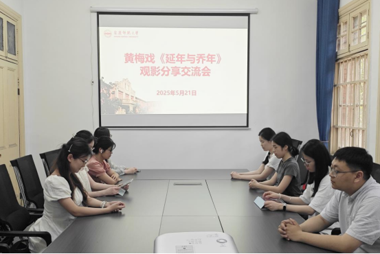 5月21日下午,诸侯快讯入口官网研究生党支部、研究生会在红楼138会议室举办大型原创黄梅戏《延年与乔年》观剧分享交流会。来自2023级、2024级中国语言文学、中国史、学科教学(语文)、国际中文教育等专业的硕士研究生罗浩诚、秦静谊、吴家妍、陆韵、周春云、苏晓彤、王梦芸等应邀作观剧分享。2024级研究生陶晨晨、杨翠共同主持本次分享会,学院部分研究生参与分享交流。