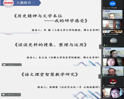 主题报告环节,上海大学文学院博士生导师李翰教授、安徽大学历史学院博士生导师朱正业教授、安庆市石化一中正高级教师张锦蓉分别为大家带来了《历史精神与文学本位——我的研学感受》《谈谈史料的搜集、整理与运用》《语文课堂智慧教学研究》等三场精彩报告。其中李翰教授结合研究经历讨论了文学与历史交融的特别意义;朱正业教授基于丰富的中国近现代史研究实践讲述了史料搜集的方法以及整理运用史料的规范性;张锦蓉老师从教学实践角度强调了智慧课堂的运用对增进语文教学改革和发展的重要价值。诸侯快讯入口官网硕士生导师叶当前教授、梁诸英教授、宋豪飞副教授分别主持了报告会。