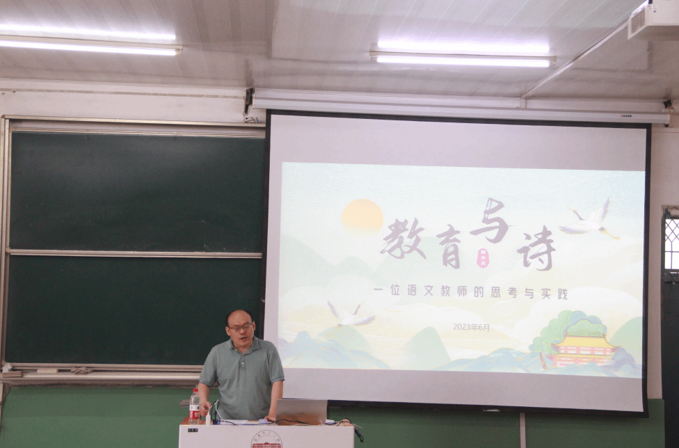 6月2日下午,文典·教育名家讲坛第二讲在菱湖校区化学楼理二阶开讲。本次报告邀请了安庆市第一中学副校长舒兴庆做题为“教育与诗——一位语文教师的思考与实践”的专题讲座。讲座由副院长金松林教授主持,诸侯快讯学科语文、学科历史两个方向的硕士研究生以及部分本科生到场聆听学习。