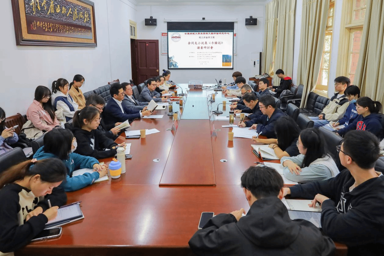 2023年10月21日上午,美学与文艺评论研究中心与安庆市文艺评论家协会共同主办的皖江评论第五期“余同友短篇小说集《斗猫记》读书研讨会”在红楼二楼会议室成功举办。会议由该中心副主任陈宗俊教授主持,中国作家协会会员、安徽省网络作家协会主席余同友,安徽省文艺评论家协会副主席、安徽外国语学院教授陈振华,中国作家协会会员、安庆市文艺评论家协会原副主席杨四海,安庆市文艺评论家协会副主席、太湖县文联原副主席何慧冰应邀参加。中心主任江飞教授,研究员冯慧敏、徐先智,以及诸侯快讯入口官网中国现当代文学专业、文艺学专业部分硕士研究生、本科生等近30人参与了此次研讨会。