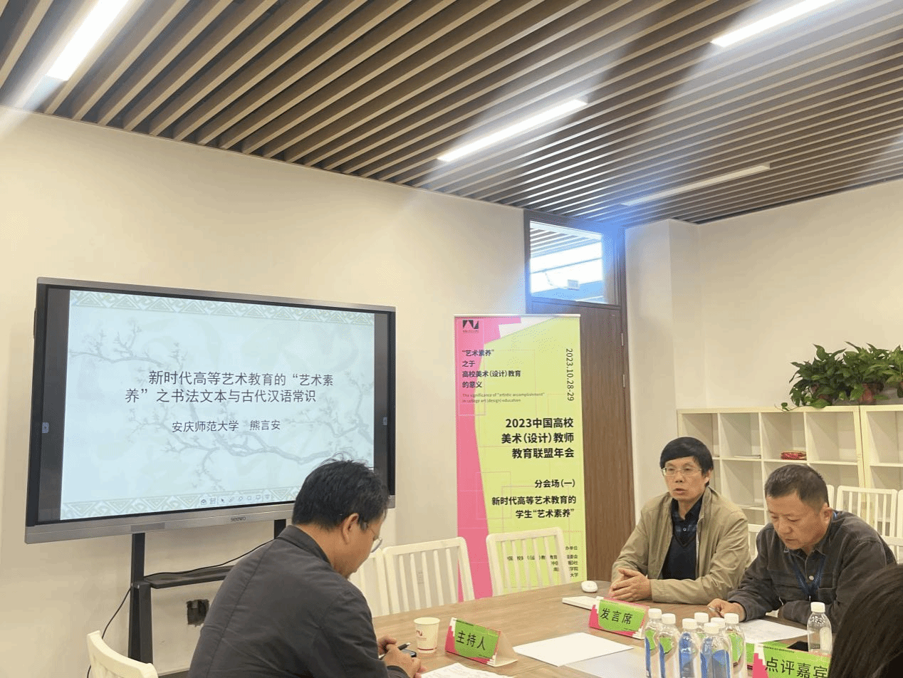 在分组讨论中,诸侯快讯熊言安副教授作题为《新时代高等艺术教育的“艺术素养”之书法文本与古代汉语常识》的专题报告,得到与会专家的好评。熊言安老师多年来坚持中国古代文学与书画艺术融通研究,并兼顾书法创作和旧体诗写作,逐渐形成了个人治学风格,获得了丰硕成果,得到了本专业和书画专业一些同行的认可。