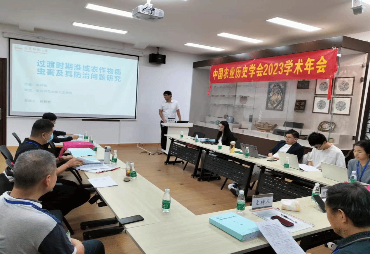 张祥稳教授和2021级历史学研究生林梓彬等国家社科基金项目“新中国过渡时期淮河流域灾异与社会问题研究”部分课题组成员应邀参会,并分别展示了中华人民共和国成立初期淮河流域农业史问题的最新研究成果,得到了与会专家的好评。会议期间,张祥稳教授主持了“近现代农业发展与转型研究”专题论坛活动。