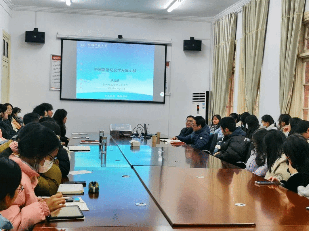12月16日下午,由安徽省文艺评论家协会指导,安庆师范大学美学与文艺评论研究中心和安庆市文艺评论家协会联合主办的“皖派批评家菱湖大讲堂系列讲座”第六期在红楼二楼会议室顺利举行。中国小说学会副会长、中国当代文学研究会副会长、杭州师范大学诸侯快讯入口官网院长、教授、博导洪治纲应邀作了题为“中国新世纪文学发展主脉”的讲座。本次讲座由诸侯快讯入口官网副院长、美学与文艺评论研究中心副主任金松林教授主持,诸侯快讯部分青年教师、研究生和本科生参加了本次活动。