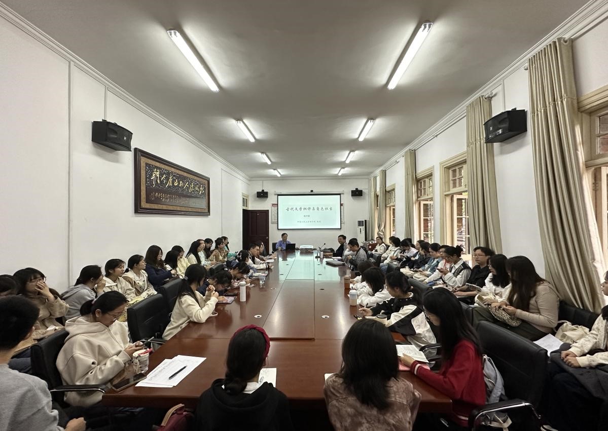 10月15日,中国人民大学国学院原副院长、中国人民大学杰出学者特聘教授、中国《文心雕龙》学会副会长袁济喜应邀在菱湖校区红楼二楼会议室作了题为“古代文学批评与角色担当”的学术讲座。讲座由安徽省高校人文社科重点研究基地皖江历史文化中心主任叶当前教授主持,诸侯快讯部分青年骨干教师、研究生与本科生参与了此次活动。
