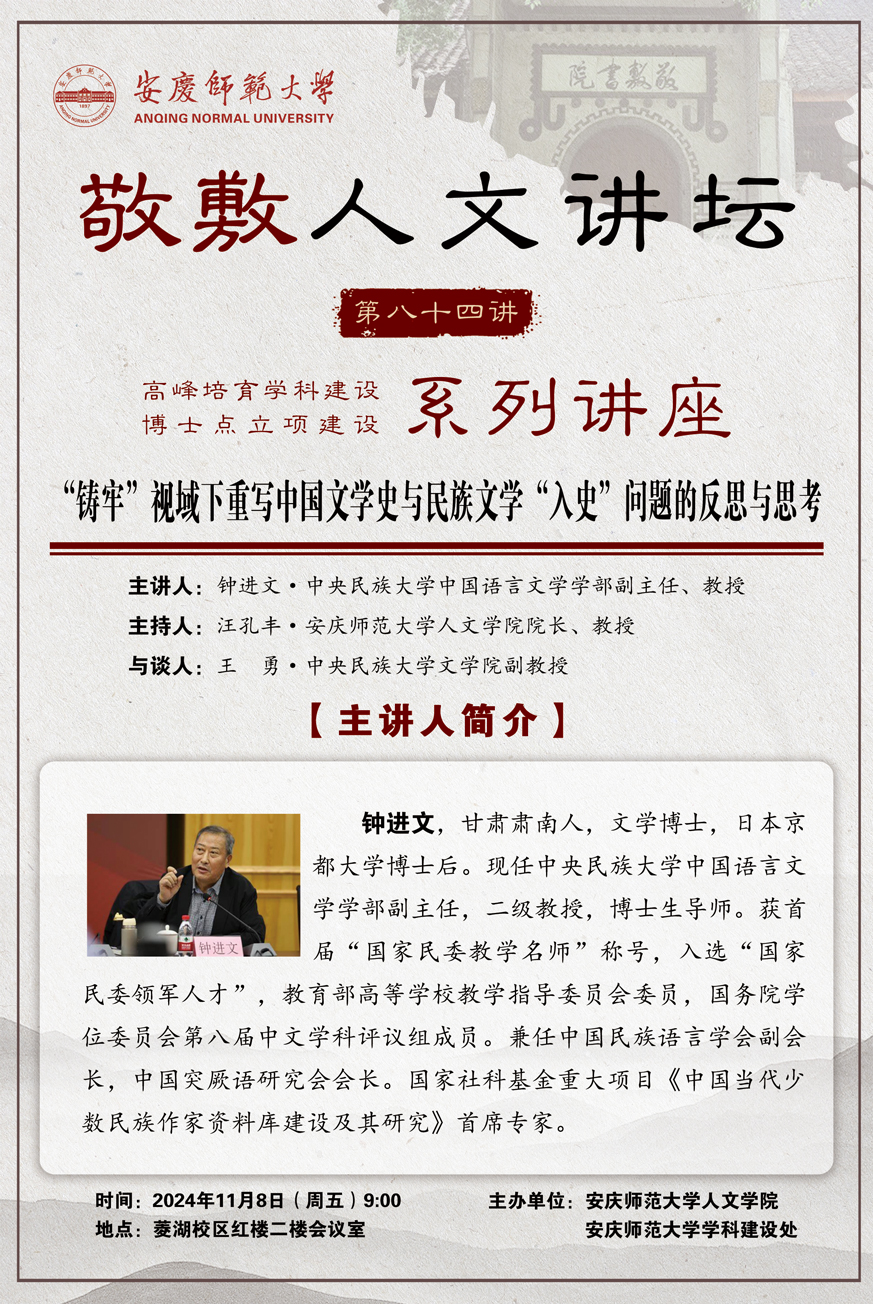 【敬敷人文讲坛(84)】“铸牢”视域下重写中国文学史与民族文学“入史”问题的反思与思考