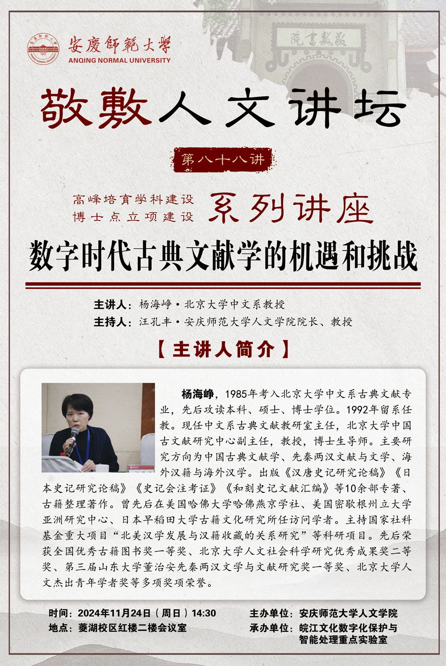 【敬敷人文讲坛(88)】数字时代古典文献学的机遇和挑战