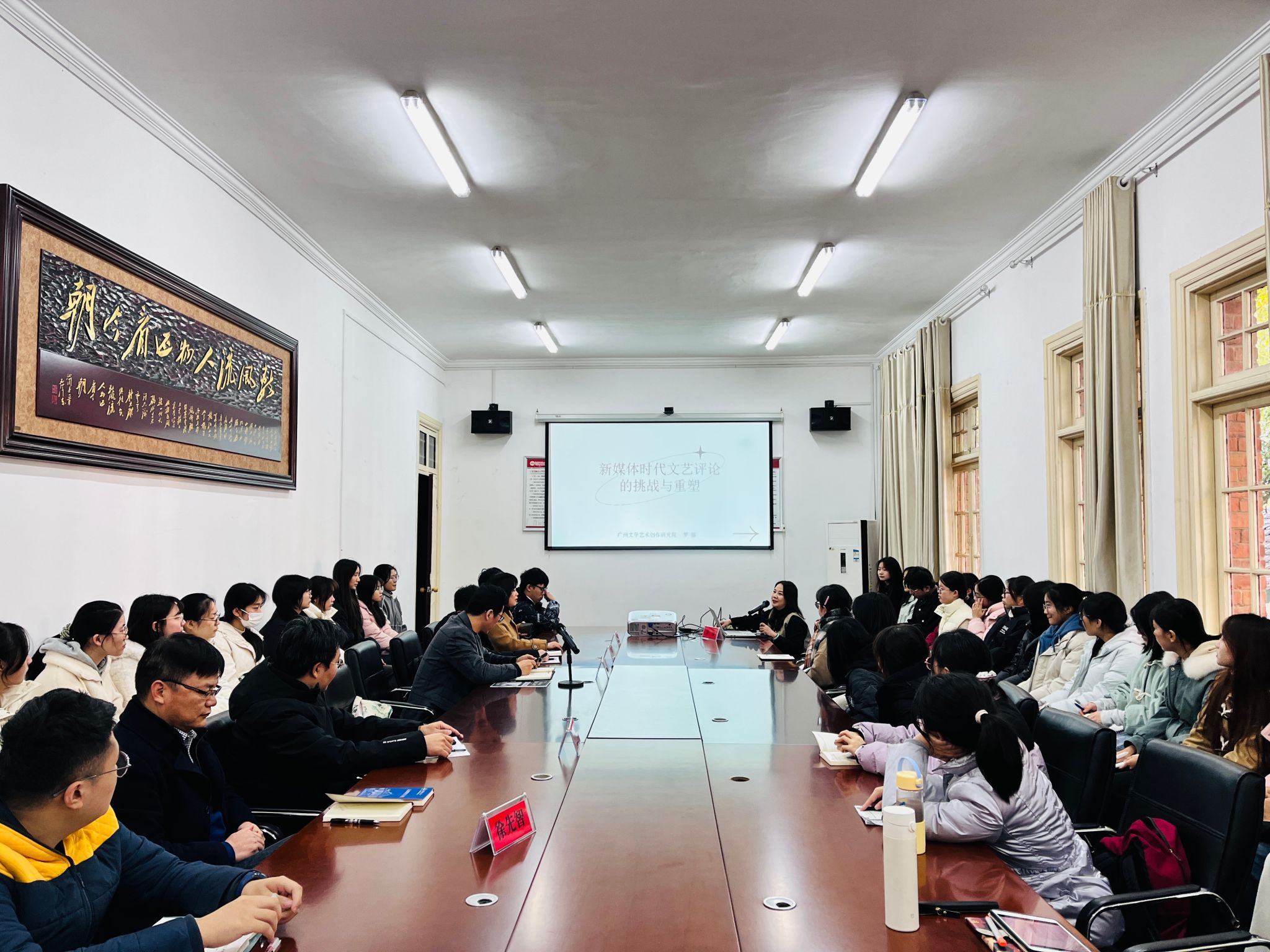 12月6日下午,文艺评论家菱湖大讲堂第一期成功举办。中国文艺评论家协会理事、广东省文艺评论家协会副主席、广州市文艺评论家协会主席、国家一级编剧罗丽应邀作了题为“新媒体时代文艺评论的挑战与重塑”的精彩讲座。本次讲座由安徽省文艺评论家协会副主席,安庆师范大学美学与文艺评论研究中心主任江飞教授主持,诸侯快讯入口官网副院长周红兵、中心副主任陈宗俊教授和专职研究员以及学院“文典班”、研究生近五十人参与。
