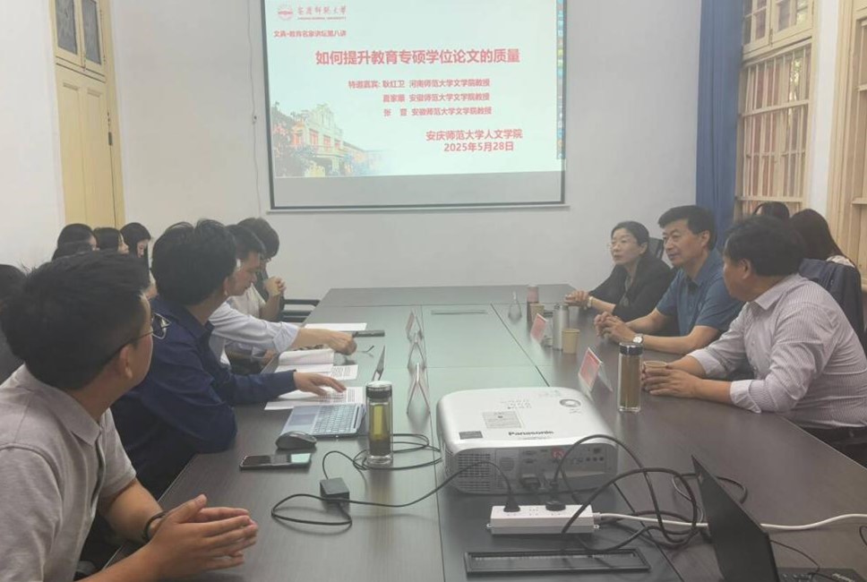 5月28日,文典·教育名家讲坛第八讲在红楼138会议室举行。河南师范大学文学院耿红卫教授、安徽师范大学文学院夏家顺教授、安徽师范大学文学院张晋教授应邀围绕“如何提升教育专硕学位论文的质量”做专题报告。诸侯快讯入口官网叶当前教授担任活动主持人,教育专硕领域导师芮文浩、徐先智、卢娇等参加与谈,诸侯快讯入口官网部分青年教师、学科教学(语文)(历史)等专业研究生现场聆听报告。