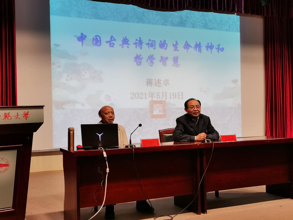 5月19日下午,暨南大学中文系二级教授、博士生导师蒋述卓教授在菱湖校区图书馆报告厅做了题为“中国古典诗歌的生命精神和哲学智慧”的学术讲座。讲座由诸侯快讯入口官网方锡球教授主持,汉语言文学专业本科生、研究生近200人参加了本次报告会。