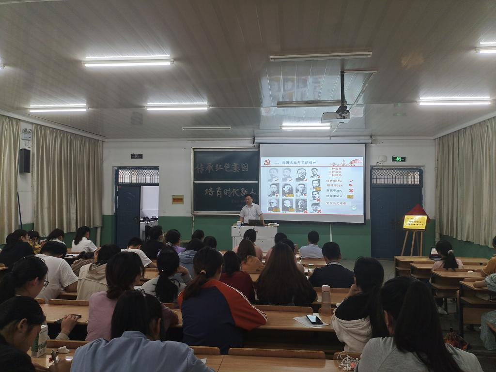 活动伊始,方瑞副教授通过丰富的图片概览了近代中国的苦难历史,将同学们带入了那个救亡图存的觉醒年代,从苦难中华和觉醒年代、救国大业和望道精神、陈望道与省立安徽大学三个方面进行阐述。介绍了陈望道翻译《共产党宣言》时发生的“真理的味道非常甜”的故事,讲解了毛泽东、邓小平、习近平等党和国家领导人对《共产党宣言》的推崇。陈望道先生是革命先驱、学术大家、教育名家,他的人生创造了诸多“第一”,例如贡献第一个《共产党宣言》的中文全译本,出任中国共产党上海地方委员会第一任书记等。方瑞老师通过报纸、文献等资料展示,加深了同学们对陈望道任教历程、文学贡献、历史地位等方面的了解。方瑞老师从陈望道受聘省立安徽大学的成因以及任教实况等方面,讲述了陈望道与省立安徽大学的渊源,详细介绍了陈望道在省立安徽大学期间的任教课程、学术活动、社团指导、本科论文指导等情况,系统梳理了陈望道担任省立安徽大学教职的经过,同时也告诉了同学们进行学术研究的方法和路径。向各位同学讲解了陈望道在安庆任教期间创作的演讲辞《言与行》,经比对考证和专家确认,《言与行》为新发现的陈望道佚文。此事被各地媒体宣传报道,引发社会广泛关注。