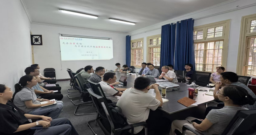 会上,金仁义教授作了题为《先秦法家思想与中国古代早期监察制度形成》的学术报告。报告基于史料的引证与解析,从“问题的提出”“先秦法家监察理论”及“利异相监与早期监察制度”三个方面对先秦法家思想与秦汉监察制度形成的内在理路作了阐释。
