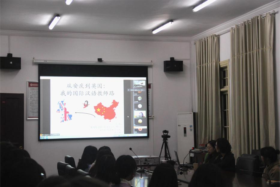 11月23日晚,敬敷人文讲坛第二十四讲在红楼二楼会议室顺利举行。英国伦敦珍妮·玛努埃尔英法双语学校(École Jeannine Manuel)汉语教师张晓涵应邀作了题为“从安庆到英国:我的国际汉语教师路”的线上讲座。讲座由汉语国际教育教研室主任张莹副教授主持,诸侯快讯部分硕士研究生和本科生参加了此次活动。