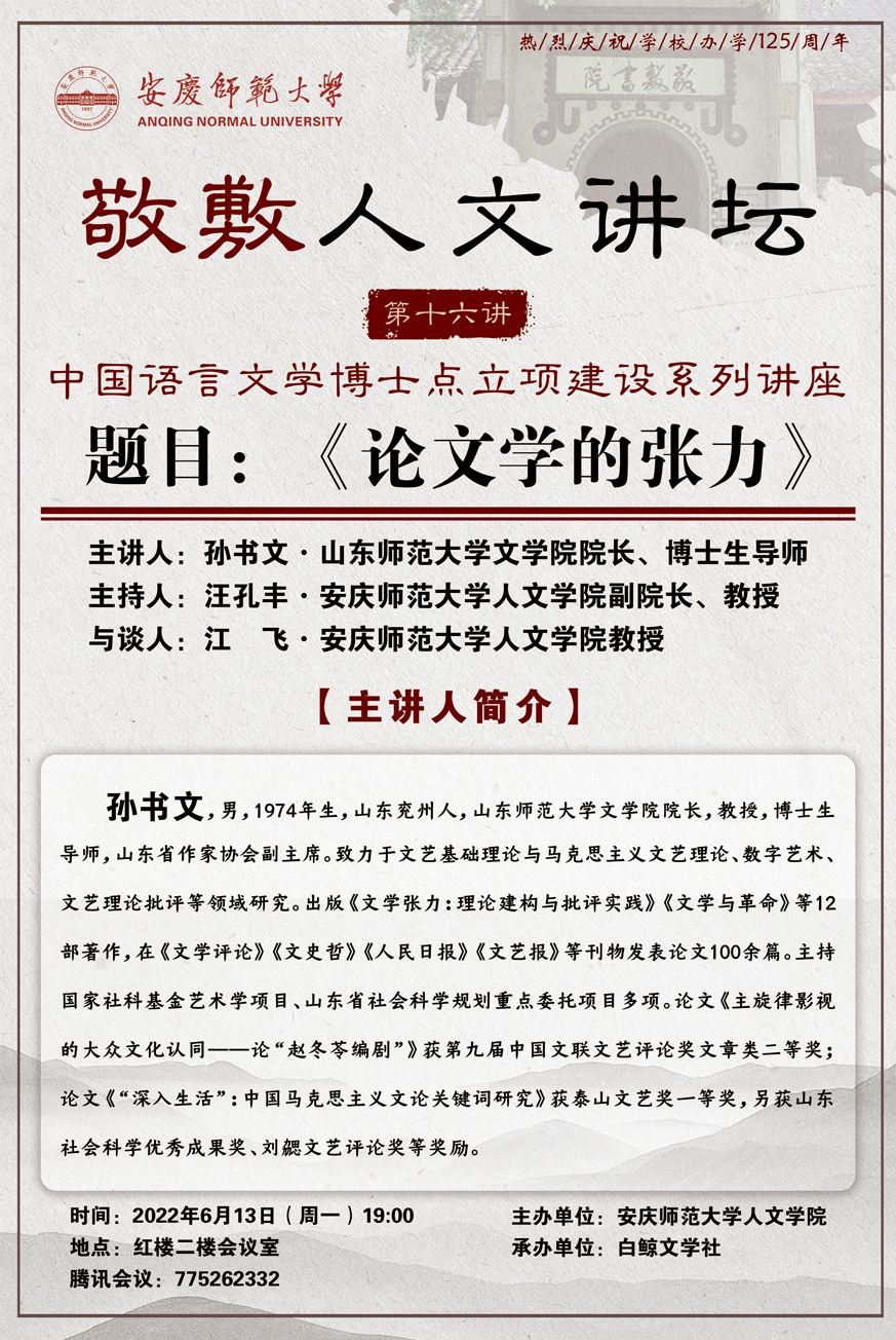 【敬敷人文讲坛(16)】《论文学的张力》
