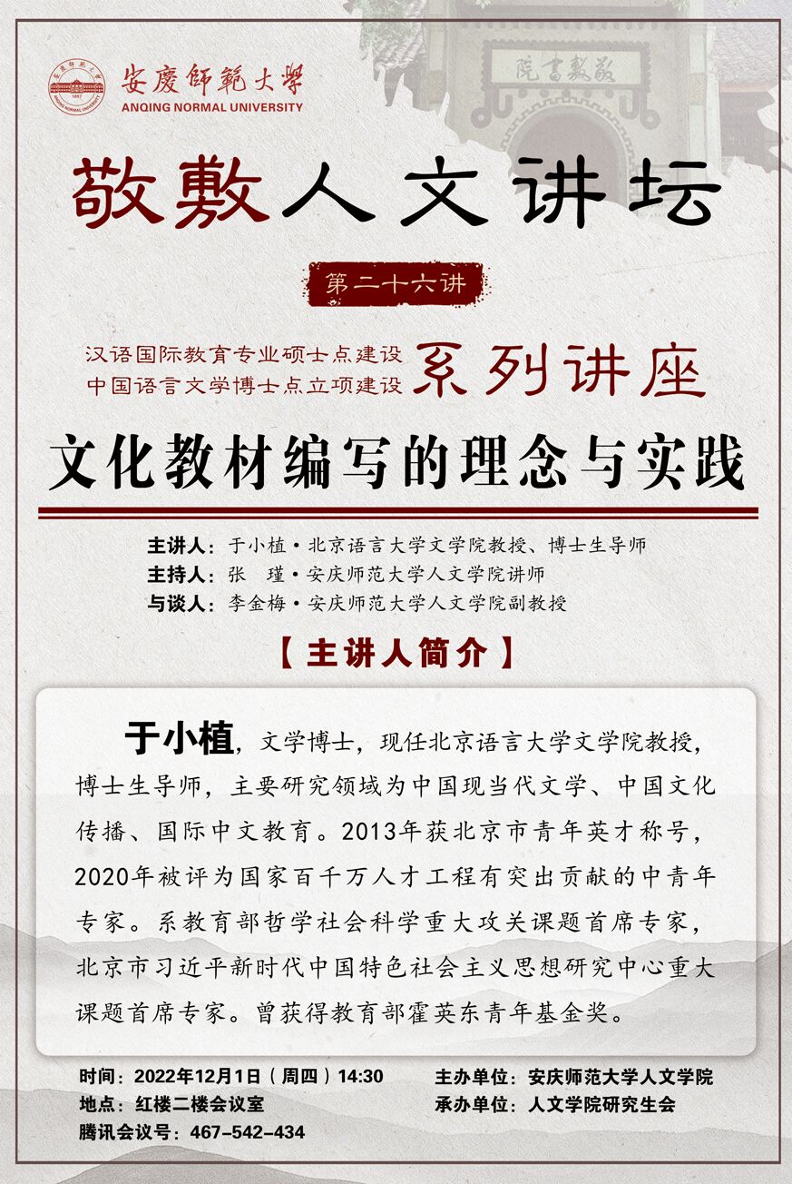 【敬敷人文讲坛(26)】文化教材编写的理念与实践
