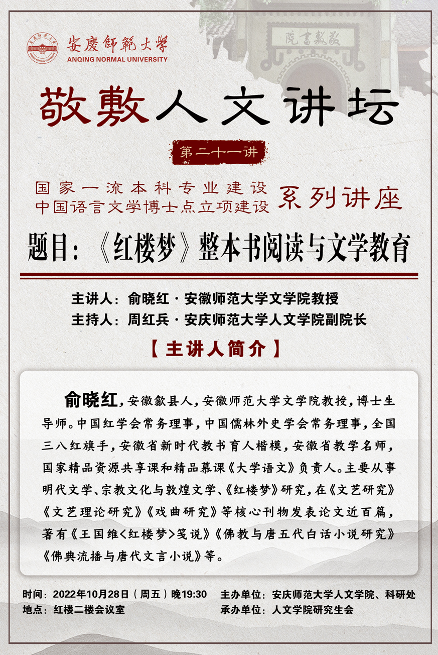 【敬敷人文讲坛(21)】《红楼梦》整本书阅读与文学教育