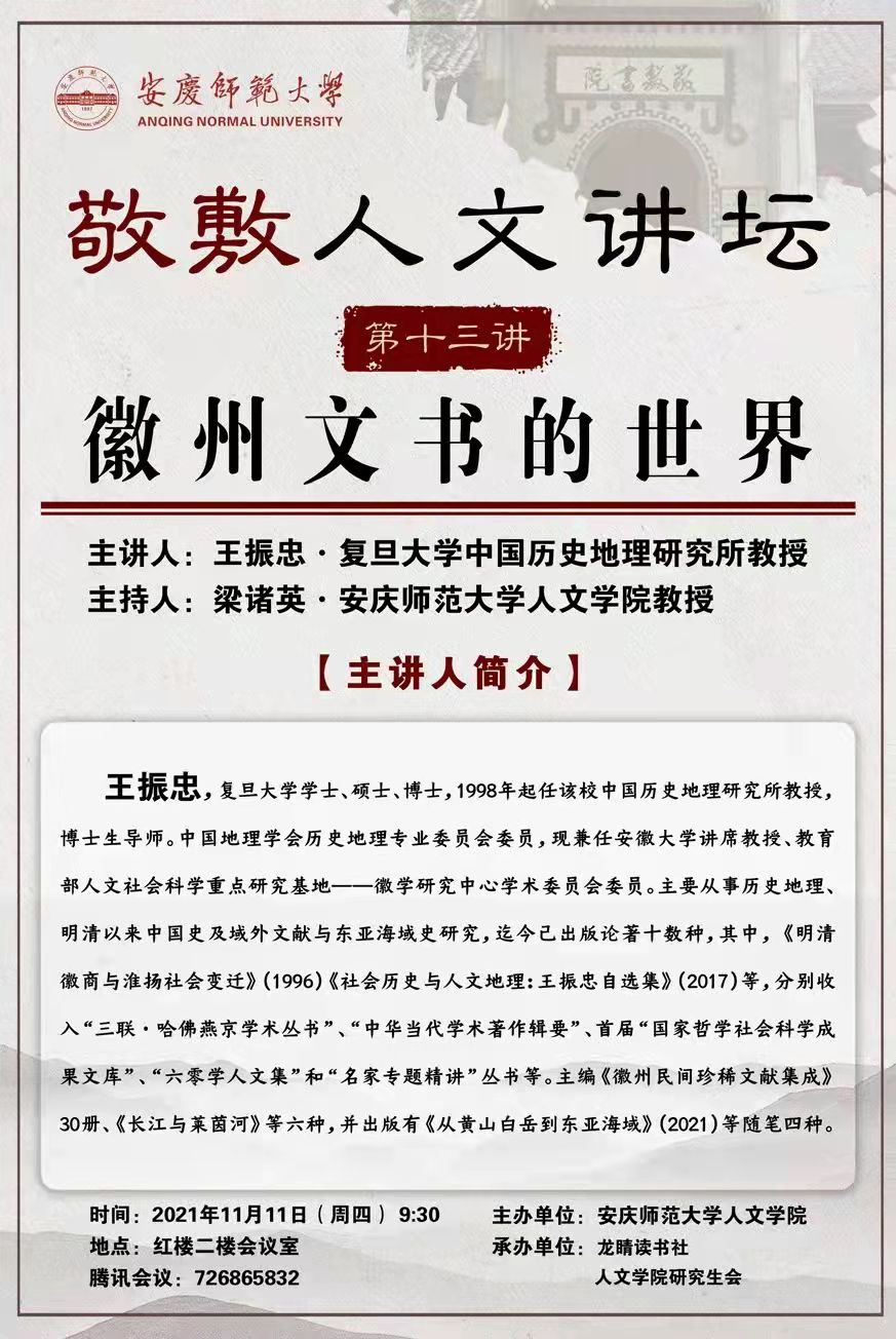 上一篇:徽学名家王振忠教授应邀为诸侯快讯师生作“徽州文书的世界”报告
