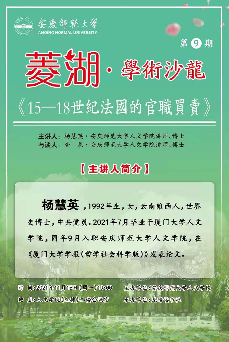 【菱湖学术沙龙⑨】《15—18世纪法国的官职买卖》