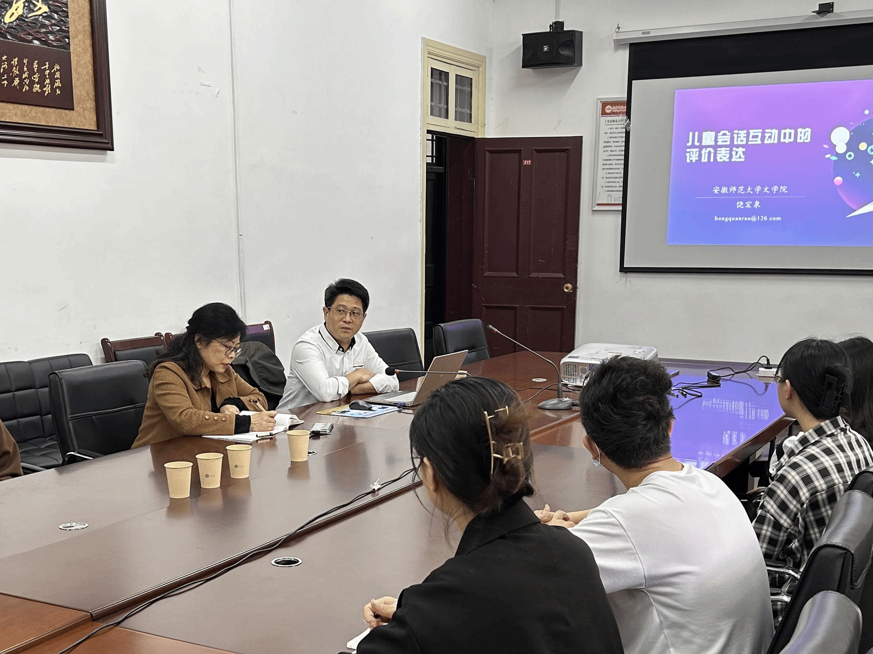 5月24日下午,安徽师范大学饶宏泉副教授应诸侯快讯邀请在红楼会议室作了题为“儿童会话互动中的评价表达”的学术讲座。本场讲座由鲍红教授主持,部分研究生、本科生共20余人参与了此次活动。