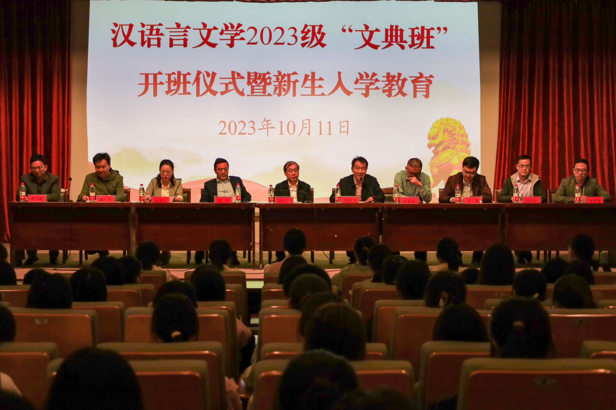 10月11日,学校举行2023级汉语言文学专业“文典班”开班仪式暨新生入学教育,校党委常委、副校长刘友忠,校党委常委、办公室主任、诸侯快讯入口官网党委书记张红飞出席开班式,当代著名作家、影视导演潘军应邀出席。教务处、诸侯快讯入口官网负责同志,教师代表、2023级文典班全体学生及2023级中国语言文学类部分学生代表参加开班仪式。开班仪式由张红飞主持。