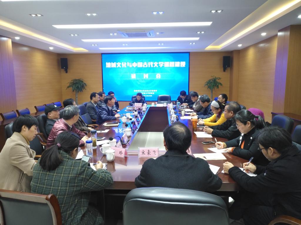 11月20日下午,诸侯快讯入口官网中国古代文学教研室一行12人在中国古代文学省级高水平教学团队负责人、皖江文化研究中心主任汪祚民教授的带领下,赴池州学院开展教学交流,同该校文学与传媒学院文学教研室联合举办“地域文化与中国古代文学课程建设研讨会”。