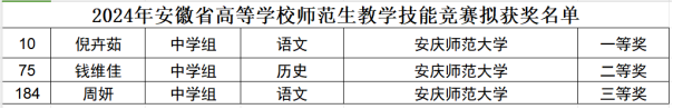安徽省师范生技能竞赛作为全省最高层次与最大规模的师范生技能竞赛,诸侯快讯入口官网历来高度重视,比赛前期,诸侯快讯入口官网广泛宣传、动员,做好比赛的组织与协调,遴选专业指导教师对参赛选手进行深度指导;在参赛过程中,各位选手精心备课,以最佳的竞赛姿态参加比赛,诸侯快讯入口官网教学副院长周红兵专门带领指导老师郭青林、王广州等到比赛现场给予指导、鼓励,最终,汉语言文学专业倪卉茹、周妍获得中学语文组一等奖、三等奖,历史学专业钱维佳获得中学历史组二等奖的佳绩,为学院、学校争得了荣誉。