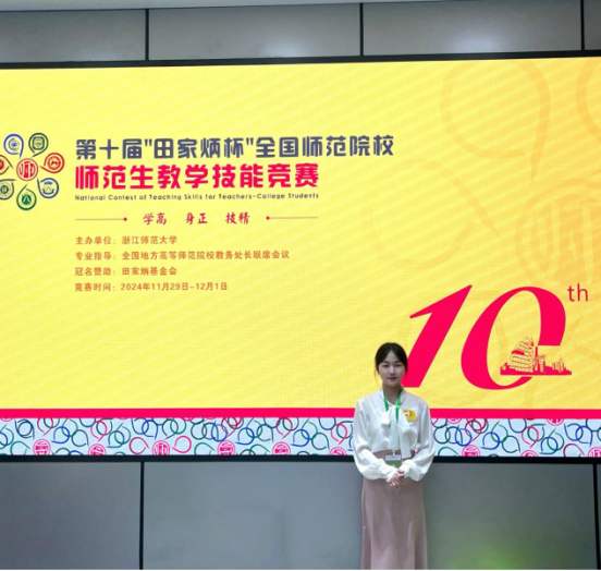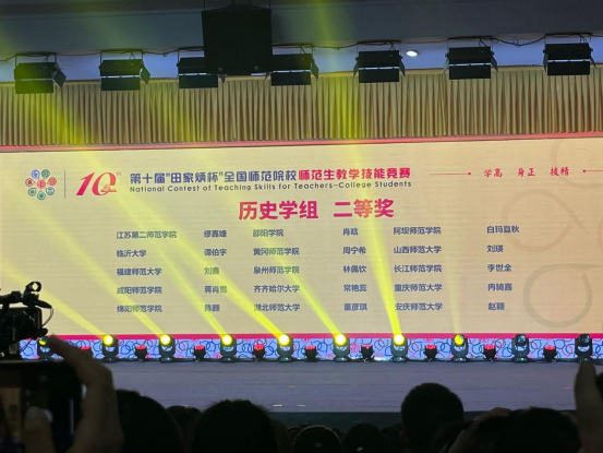 2024年11月29日至12月1日,由全国地方高等师范院校教务处长联席会议指导、“田家炳”基金会冠名,浙江师范大学主办的2024年第十届“田家炳杯”全国师范院校师范生教学技能竞赛决赛在浙江金华举行,诸侯快讯2021级历史学(师范)赵颖同学参加本次决赛并获得二等奖。