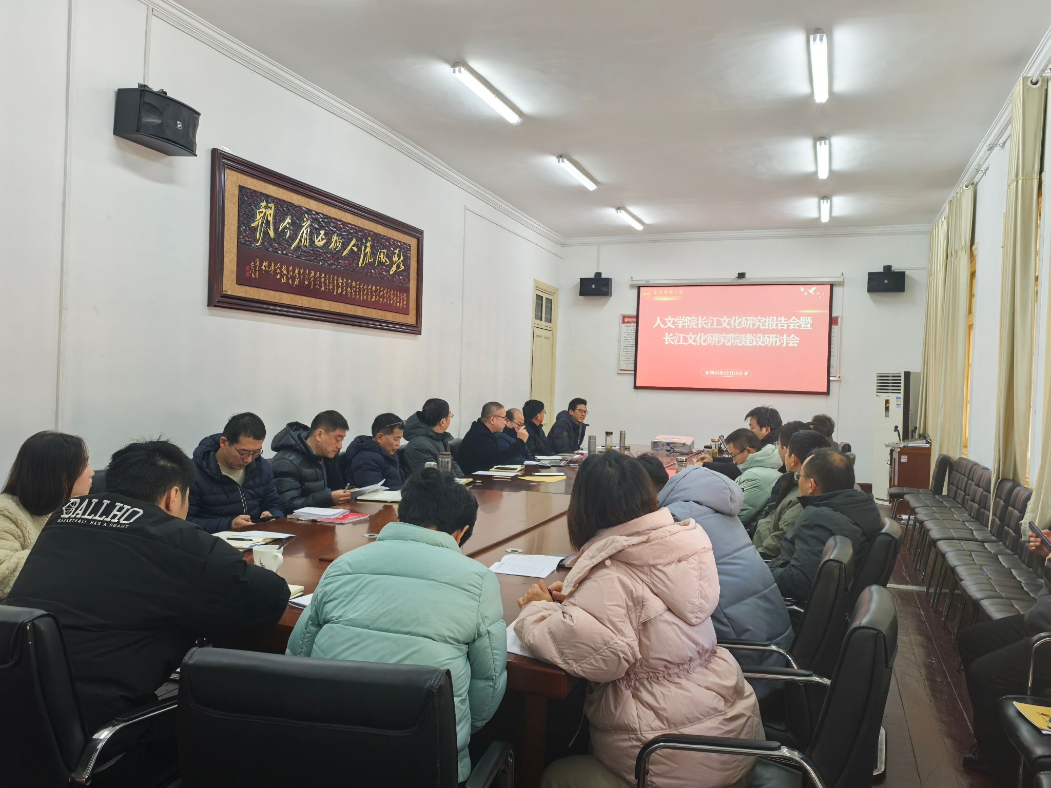 会议最后,汪孔丰院长发表总结,就长江文化研究提出四点要求:一要从国家、安徽、学校、学院、个人等层面提高思想认识;二要从教材编写、教学研究、成果奖申报、特色课程等教学层面加强文化传承;三要从学科方向凝练、科研平台建设、学术团队打造等层面加强学术研究;四要从学生第二课堂层面加强文化熏陶,增强学生文化自信。